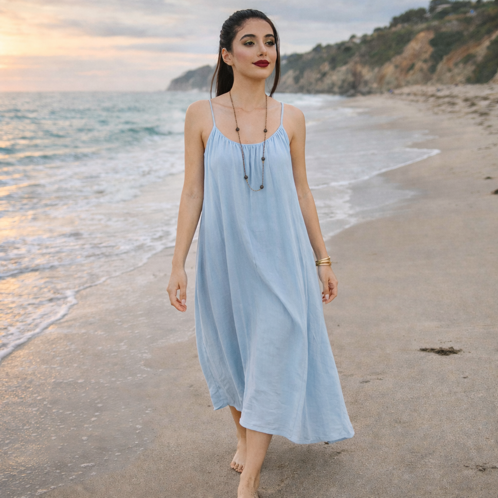 Designed with a flowing silhouette and ultra-soft fabric, this elegant sleeveless maxi dress drapes beautifully over your body for a flattering, feminine look. Whether you're relaxing at home or winding down for the night.