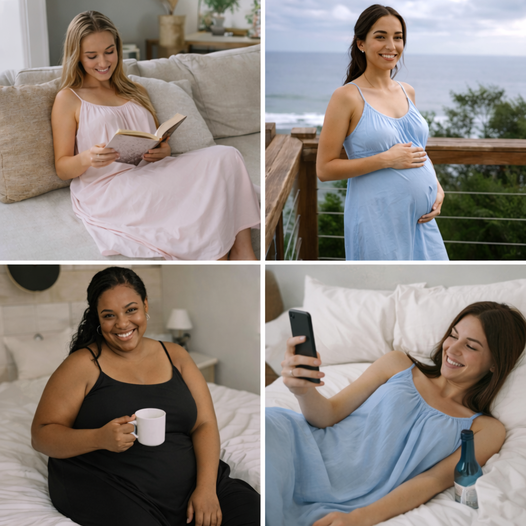 “This dress exceeded my expectations. It’s lightweight, stretchy, and fits beautifully without being tight. I feel confident and comfortable at the same time. Perfect for sleeping or just relaxing around the house.”